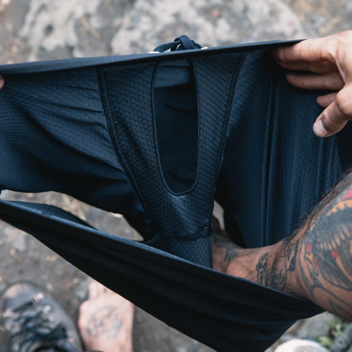 ポケットのおかげでポジションが安定して太ももとくっついたり擦れたりしません。また、肌あたり滑らかな生地のおかげで蒸れず、とても快適な着け心地です。